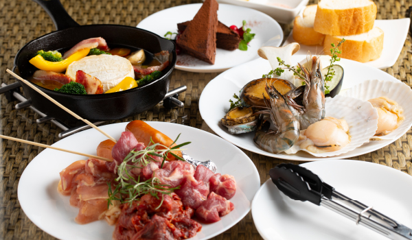・Plat principal (au choix : barbecue, rosbif, travers de porc, poulet grillé ou spécialité gastronomique d’Okayama)